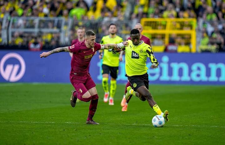 Фото: bdb.de 8 марта 2025 года, Дортмунд. «Боруссия» — «Аугсбург» — 0:1. С мячом — лучший бомбардир дортмундской команды и всей Лиги чемпионов 2024/25 Серу Гирасси.