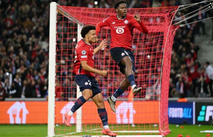 Фото: Getty Images 2 октября 2024 года, Лилль. «Лилль» — «Реал» — 1:0. Джонатан Дэвид (справа) празднует победный гол в ворота испанского суперклуба.