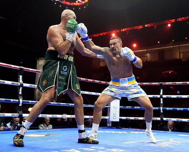 Фото: Getty Images Украинский тяжеловес Александр Усик (справа) после победы над Тайсоном Фьюри в мае этого года владел званием абсолютного чемпиона только один месяц