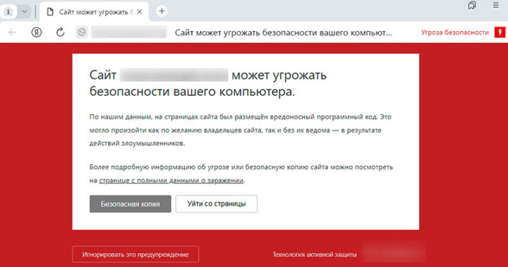 Эта ошибка легко распознается. Пользователь видит уведомление по типу «Сайт может угрожать безопасности вашего компьютера/устройства».