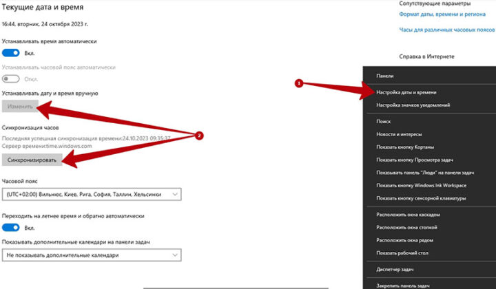 Чтобы провести синхронизацию на ПК с операционной системой Windows, необходимо кликнуть правой кнопкой мыши на значение даты и времени в правом нижнем углу экрана. Затем нужно нажать на «Настройка даты и времени» и провести ручную установку или автоматическую синхронизацию.