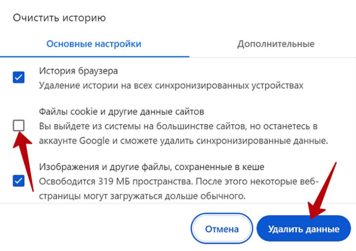 Далее требуется поставить галочку напротив пункта с удалением файлов куки и подтвердить операцию. Активировать другие опции не обязательно.