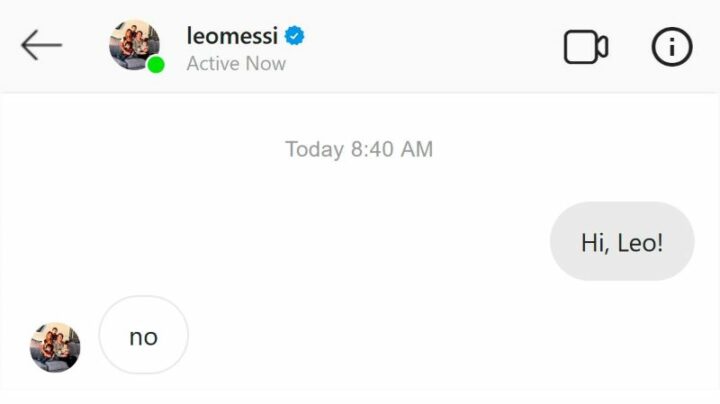 Сперва столичный клуб сымитировал переписку с Месси в соцсетях. Москвичи якобы поздоровались с аргентинцем и получили в ответ лаконичное «нет».