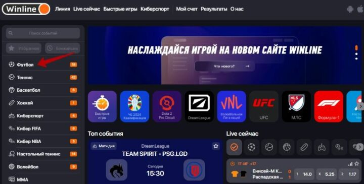 - Открыть сайт или мобильное приложение БК для перехода в линию футбола.