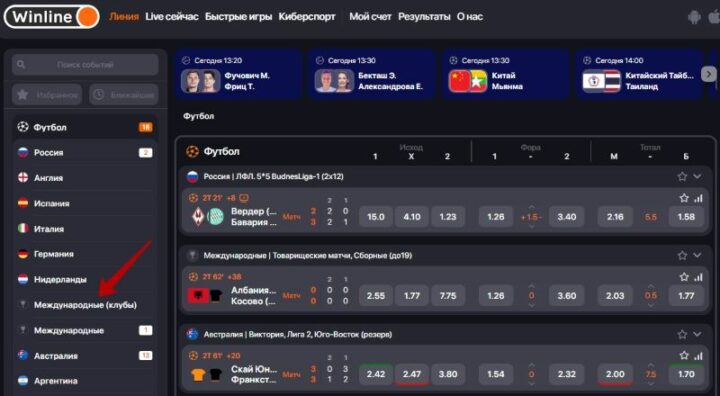 - Войти во вкладку «Международные (клубы)».