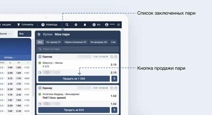 Функция позволяет сделать досрочный расчет исхода. В основном ее применяют в тех случаях, когда нужно оформить еще одну ставку, а денег на балансе нет. Также нередко бетторы совершают продажу, если не уверены в своем решении и хотят зафиксировать прибыль или уменьшить возможный убыток.