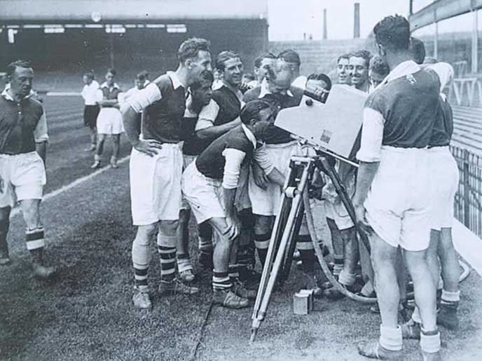 Развитие ТВ кардинально изменило восприятие «игры миллионов» и сделало ее доступной для широчайшей аудитории. Дебютной «официальной» трансляцией футбола считается эфир на телеканале BBC в 1937 году — встретились основная и вторая команды английского клуба «Арсенал».