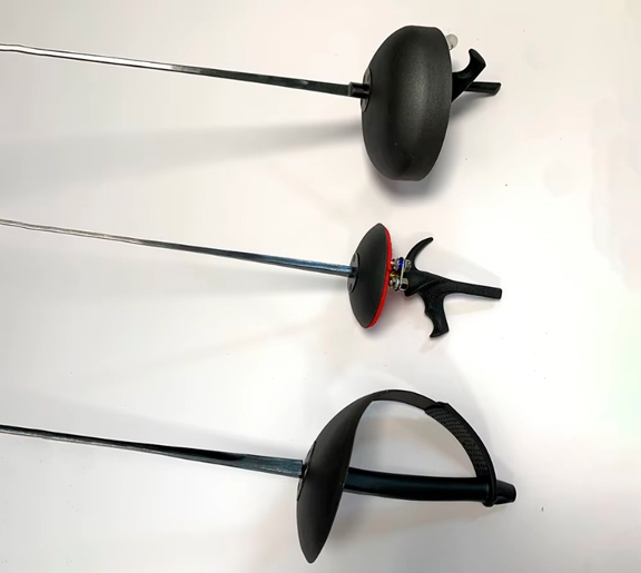 Клинки в соревнованиях высокого уровня изготавливаются из стали Maraging. Она отличается повышенной прочностью и безопасностью — ломается под прямым углом, не образуя острых краев.