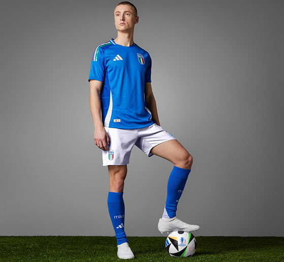 Поставщиком футбольной формы для итальянцев выступает компания Adidas, которая также экипирует сборную Германии.