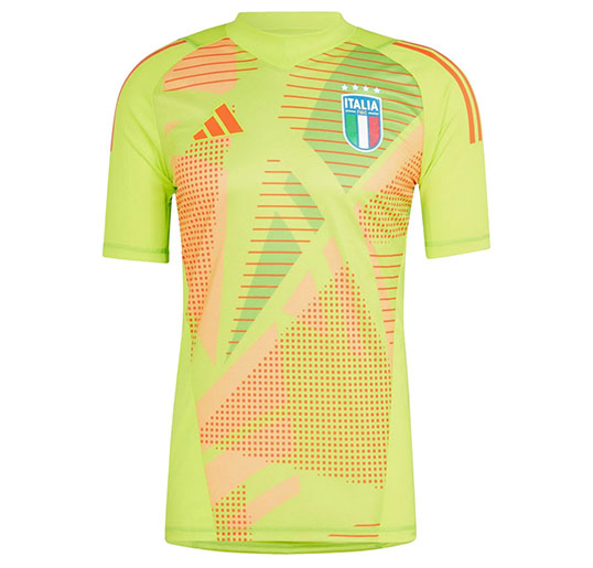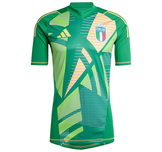 Производители экипировки использовали традиционные для этой страны цвета — синий, белый, красный и зеленый. С левой стороны футболки находится эмблема сборной с национальным флагом и четырьмя звездами, символизирующими количество завоеванных итальянцами кубков мира по футболу. Они становились триумфаторами ЧМ в:
