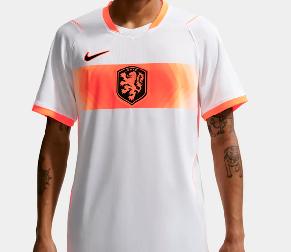Основной комплект «оранжевых» для мундиаля в Северной Америке — пример того, как можно на максимум выкрутить яркость классики. Дизайнеры Nike отказались от сложных узоров и лишних деталей, сделав ставку на чистоту оттенка и мощную энергетику. Форма выглядит солидно и современно, воплощая идею «усиления традиций».