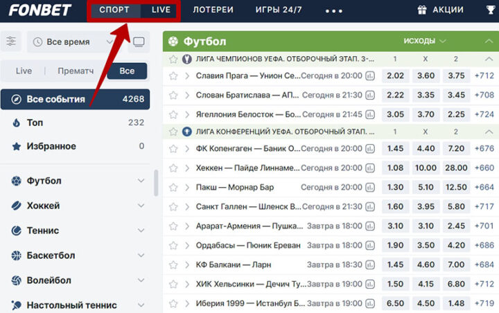 При использовании депозитных бонусов новички БК Fonbet не ограничены в дисциплинах, турнирах, линиях, коэффициентах и других параметрах ставок. Главное — играть в разделах «Спорт» и Live. Вкладки с развлечениями 24/7 и лотерея не участвуют в промо.