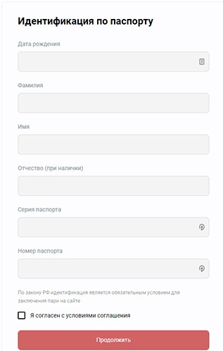 Появится страница, на которой пользователю необходимо указать ФИО, дату рождения и данные документа (номер и серию). В конце нажать кнопку «Продолжить».