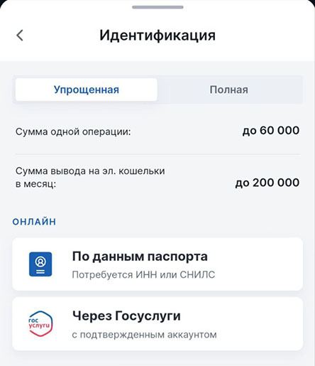 Максимальная сумма одной операции | До 60 000 |