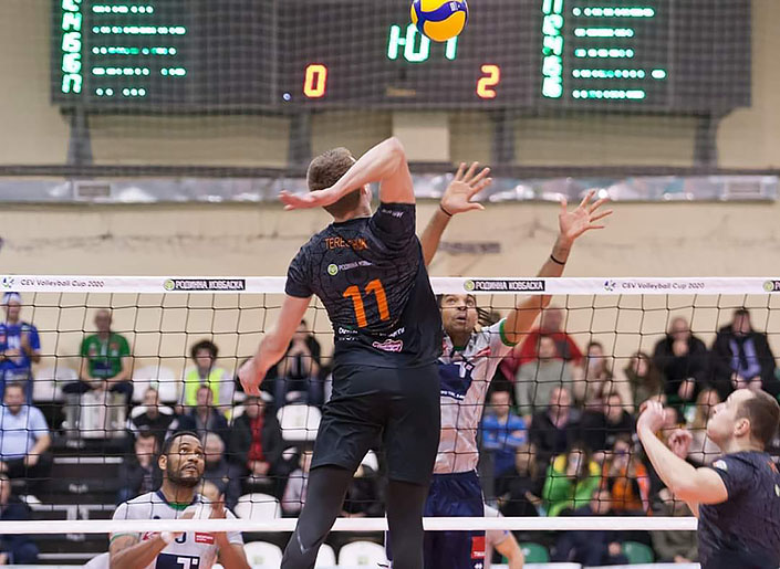 Александр Терещук ― центральный блокирующий ВК «Днепр». В сезоне-2020/21 он выиграл с днепрянами Высшую лигу, а в текущем чемпионате его команда после 22 проведенных матчей идет на четвертом месте и имеет равное количество побед и поражений.