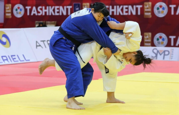 Фото: ijf.org Анжела Гаспарян (справа) против южнокорейской дзюдоистки Ким Ха-юн на турнире «Большого шлема» по дзюдо 2021 года в Ташкенте