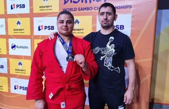 Фото: Личный архив Анжелы Гаспарян Анжела Гаспарян — серебряная призерка ЧМ по самбо 2022 года. На фото — с тренером Сергеем Мкртчаном