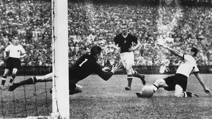 В золотом матче немцы уступили родоначальникам футбола. Хозяева добились успеха 4:2, дважды забив в дополнительное время. Хет-трик оформил Джеффри Херст. Ключевой момент — его гол на 101-й минуте при 2:2 на табло. После удара англичанина мяч отскочил в район линии ворот. Главный арбитр не видел, была ли она пересечена. Он положился на бокового судью из СССР Тофика Бахрамова, убедительно засчитавшего гол. Этот эпизод остается одним из самых спорных в истории мирового футбола.