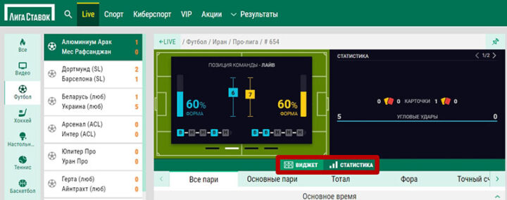 Высоких баллов удостаиваются букмекеры с видеотрансляциями топового спорта. В случае их отсутствия будет плюсом наличие виджета с инфографикой и подсчетом лайв-статистики.