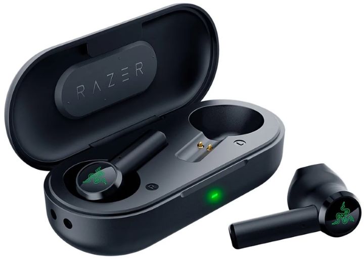 Еще один представитель геймерской гарнитуры — TWS-наушники от компании Razer. Данная новинка подключается беспроводным способом при помощи модуля Bluetooth 5.2. Гарнитура легко садится в уши любой формы, а дополнительный зацеп обеспечивают силиконовые насадки на излучателях.