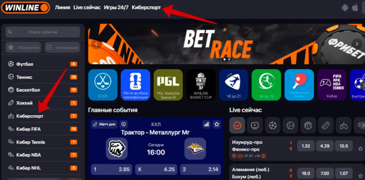 - Нажать на «Киберспорт» в блоке с дисциплинами или шапке сайта.
