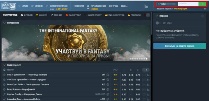 Функционал букмекерской конторы Балтбет предусматривает только один способ авторизации. Это вход по мобильному российского оператора сотовой связи.