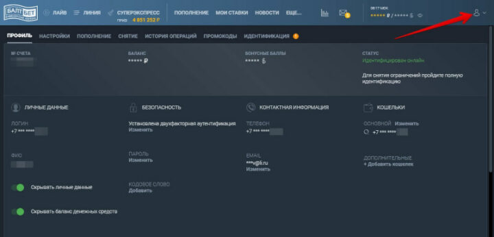Личный кабинет Балтбет