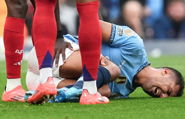 Фото: Getty Images 22 сентября 2024 года, Манчестер. «Манчестер Сити» — «Арсенал» — 2:2. Тяжелая травма, полученная в этом матче лидером «Сити» Родри, стала роковой для команды Гвардиолы.
