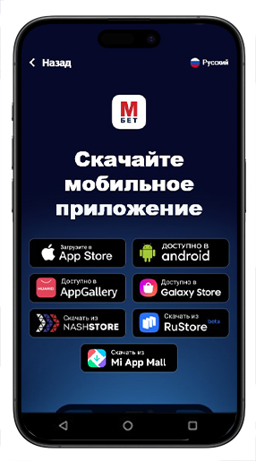 Раздел содержит информационный блок с магазинами приложений, в которых размещен софт Marathonbet. В качестве альтернативы добавлен прямой URL на файл APK, который можно инсталлировать на смартфон вручную при клике по кнопке «Доступно на Android».
