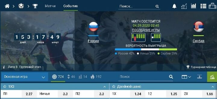 Рассмотрим пример. Матч Лиги наций УЕФА, Россия – Сербия.