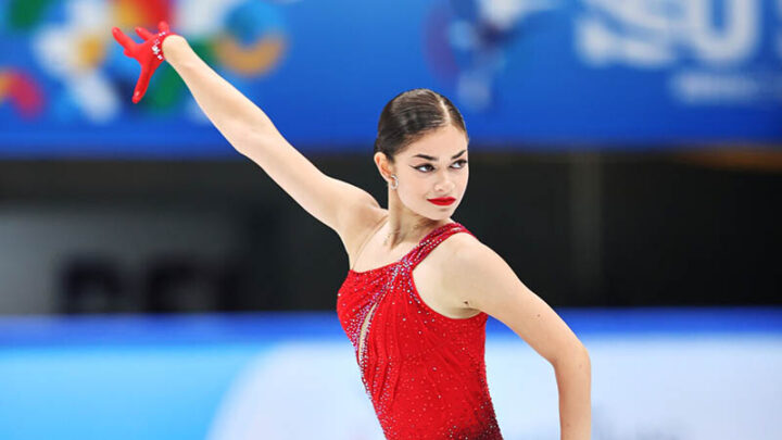 Фото: ISU/Getty Images 19 сентября 2025 года, Пекин. Аделия Петросян исполняет короткую программу на квалификационном турнире Олимпиады.