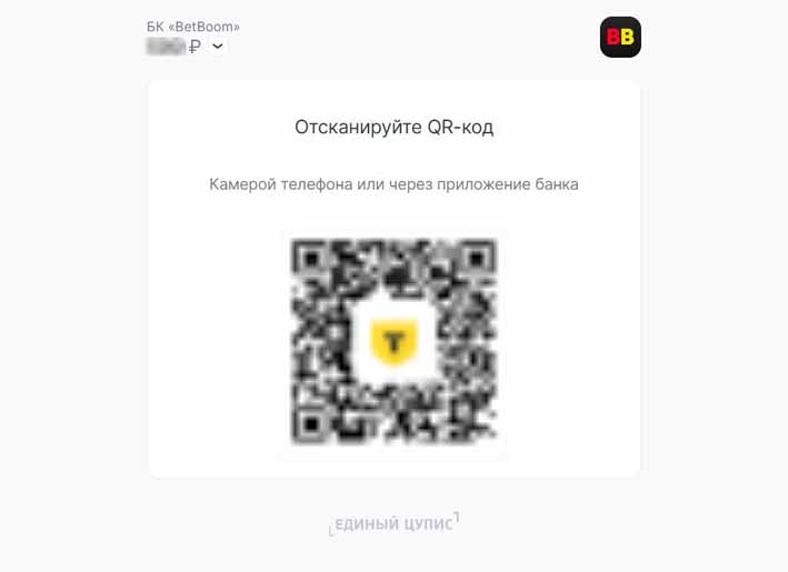 Владельцы аккаунтов в системах бесконтактных платежей SberPay и T-Pay могут быстро пополнить баланс в BetBoom. После ввода суммы программа сгенерирует уникальный QR-код. Его надо отсканировать камерой или непосредственно в приложении, а затем подтвердить операцию.