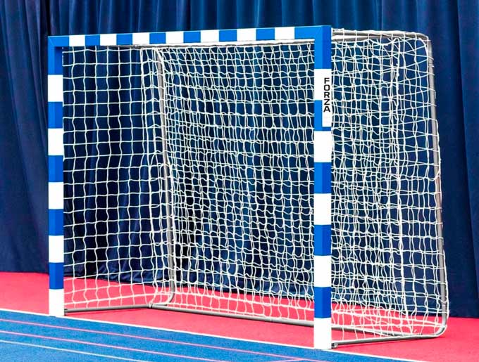Официальные габариты: ширина — три метра, высота — два. Штанги и перекладина имеют одинаковую толщину и изготавливаются из деревянных, металлических или других материалов, разрешенных FIFA. Также они окрашены в контрастный цвет по отношению к фону зала и жестко закреплены, исключая смещение или опрокидывание.