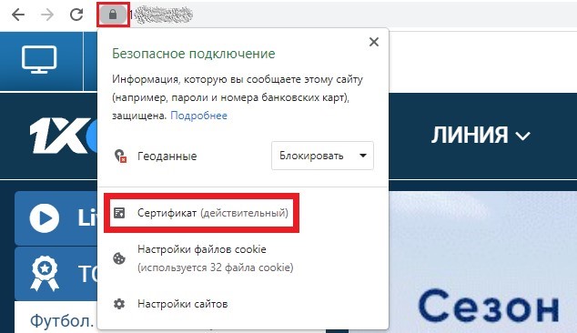 Надежное рабочее и актуальное зеркало сайта 1xStavka в начале адресной строки в браузере отмечено действительным сертификатом в виде замка.