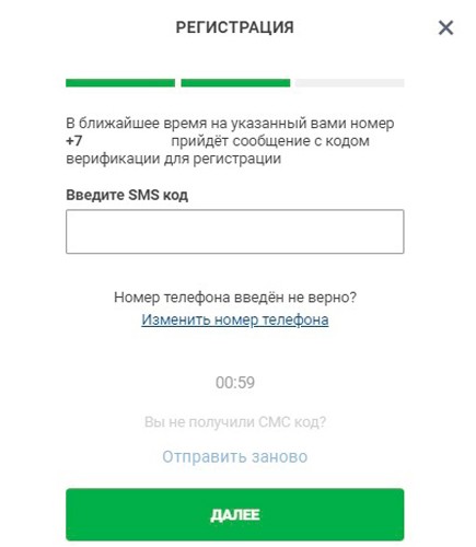 - На указанный номер придет шестизначный код, который требуется ввести в открывшемся окне. Если сообщение не приходит, его можно запросить повторно через минуту, нажав соответствующую кнопку.