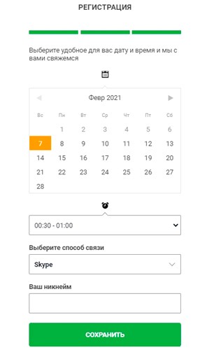 - Если код введен верно, появится окно, в котором будет предложено выбрать дату и время звонка. Он нужен для подтверждения личности. Без этого невозможно внести депозит и начать делать ставки. Пользователь может выбрать способ связи: Skype, Viber, Discord или WhatsApp. Также необходимо ввести ник в выбранном мессенджере. В конце нужно нажать кнопку «Сохранить».