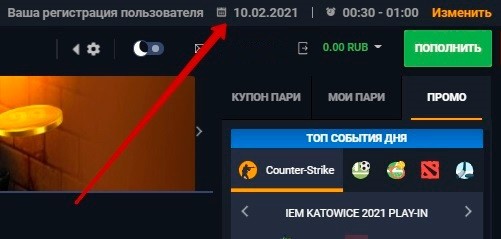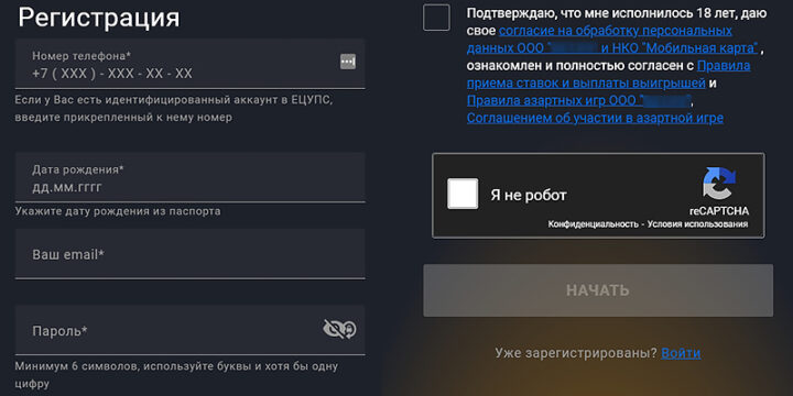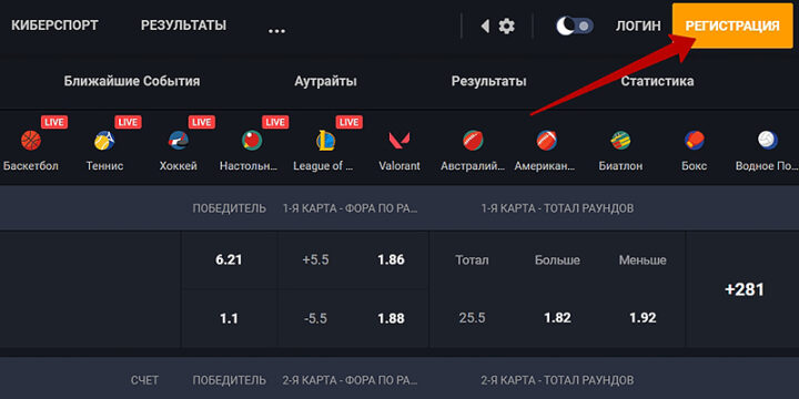- Нужно зайти на сайт букмекера и нажать кнопку «Регистрация» в правом углу экрана.