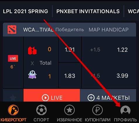 - После установки приложения нужно в нижней части экрана кликнуть по значку «Профиль».