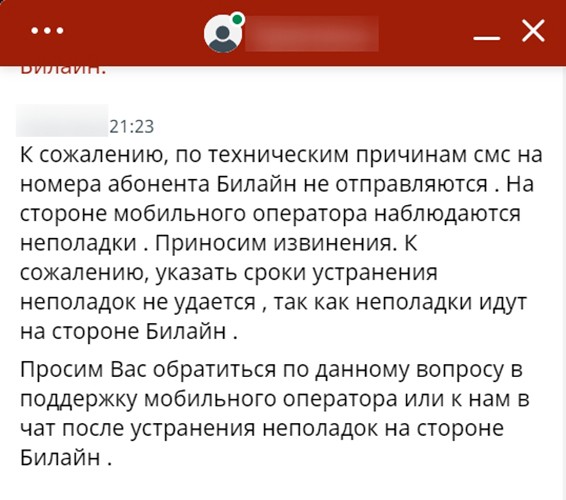 Владельцев SIM-карт от Билайн может ждать неприятный сюрприз. СМС периодически не доходят до абонентов этого оператора. Достоверной информацией о причинах возникновения этой проблемы служба поддержки букмекера не владеет. Существует предположение, что причина в программном конфликте баз данных Билайна. Поэтому, если есть возможность, лучше создавать аккаунт на номер от любого другого российского оператора.