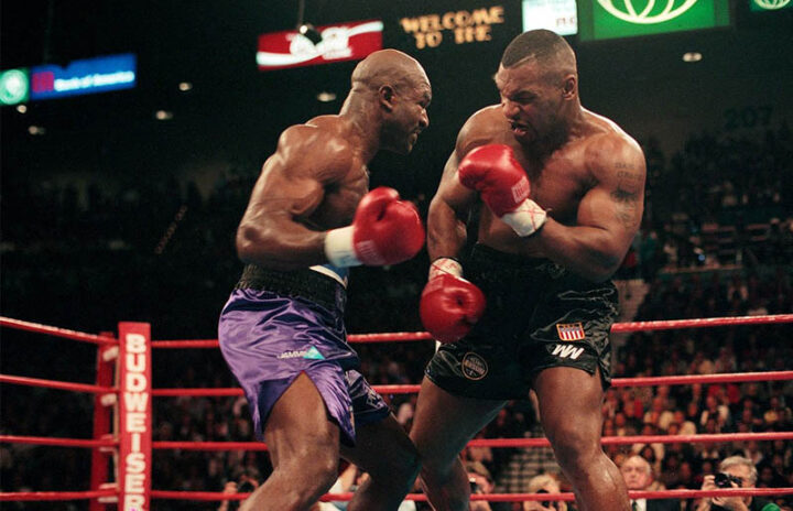 Первая встреча легендарных тяжеловесов прошла в штате Невада на арене MGM Grand 9 ноября 1996 года. Майк выходил в статусе чемпиона, Эвендер — претендента. Оба пользовались невероятной популярностью, но если у Тайсона была полоса побед, то у Холифилда за год до этого случилось поражение в третьем бою с Риддиком Боу. Многие эксперты сочли, что он уже на спаде, и не давали никаких шансов. Однако Эвандер огорчил букмекеров, нокаутировав соперника в 11 раунде. Это был большой апсет, который дал толчок в дальнейшем развитии карьеры Холифилда.