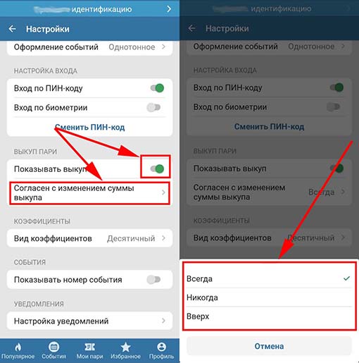 Приложение позволяет включить показ функции и заранее запрограммировать до 3 вариантов действий в зависимости от изменения стоимости выкупа. В момент принятия решения по кешауту букмекер будет придерживаться установленных пользователем опций, а также правил компании.