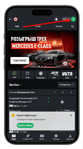 Чтобы внести депозит на счет БК, нужно открыть список платежных методов, нажав на иконку с плюсом.