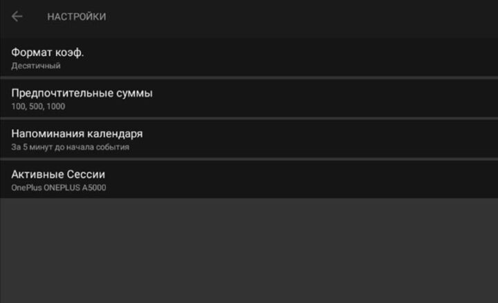 В самом приложении Мелбет ограничены возможности персонализации интерфейса. Так, в настройках есть лишь три опции: изменение формата коэффициентов, указание предпочтительных сумм ставок и установка времени напоминания о начале события. Также доступна информация об активных сессиях и истории авторизаций в аккаунте.