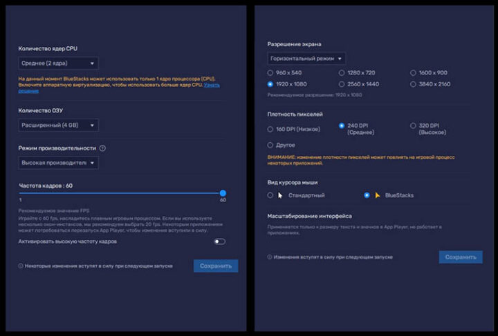В расширенных опциях BlueStacks клиентам доступны настройка производительности устройства, графики, управления и персонализация еще более 10 важных функциональных блоков. Однако новичкам рекомендуется поначалу воспользоваться параметрами по умолчанию и менять работу эмулятора только после освоения базовых возможностей.