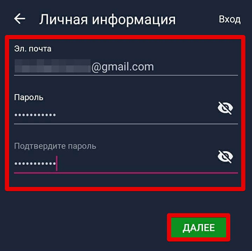 На первом этапе создания аккаунта необходимо указать только адрес электронной почты и пароль.