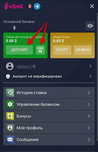 Пополнение баланса происходит в разделе «Депозит». Там же можно переключить на «Вывод». Вход в данный раздел доступен через Личный кабинет, для этого следует нажать на иконку с деньгами.