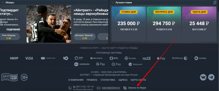 Доступно три основных способа связи со службой техподдержки Балтбет: по мобильному телефону, e-mail или Skype.