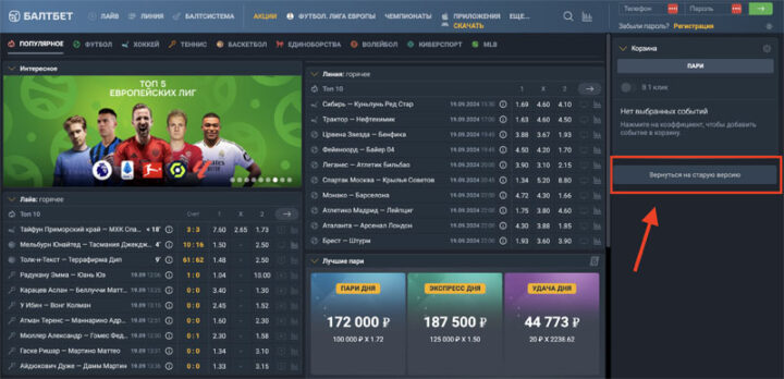 Чтобы попасть на прежнюю платформу, игрокам необходимо выполнить несколько простых шагов. Сначала нужно открыть браузер и перейти на сайт БК Baltbet. Затем на главной странице следует нажать на кнопку «Вернуться на старую версию».
