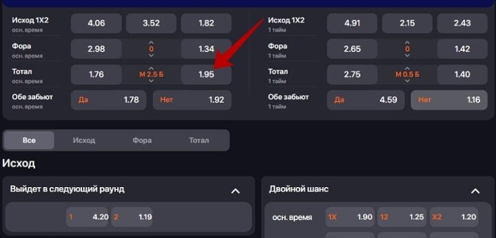 Стратегия ставок на тотал + победу или двойной шанс