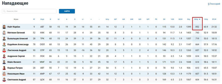 Фото: khl.ru В регулярном чемпионате КХЛ 2022/23 лучший показатель среди нападающих у Найта Корбэна — 852 выигранных вбрасывания